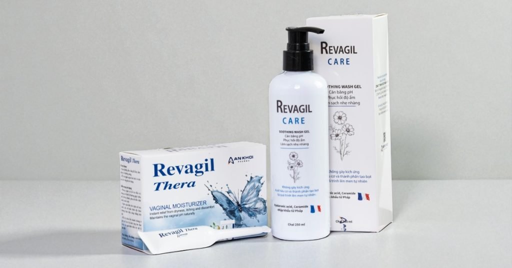 – Dung dịch vệ sinh: Revagil Care – Làm sạch dịu nhẹ, dưỡng ẩm chuyên sâu cho da nhạy cảm.